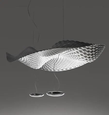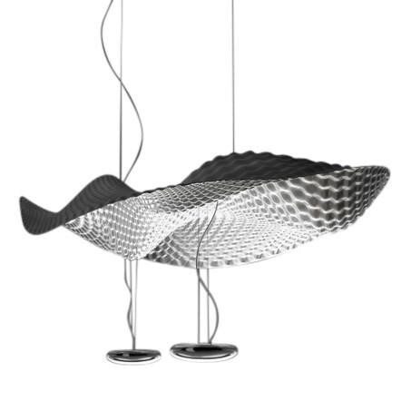The Artemide COSMIC ANGEL SUSPENSION, designed by Ross Lovegrove, is a pendant lamp that blends aesthetics and functionality. Suitable for indoor use (IP 20) and excluding lamps, it accommodates LED DIM 2x11W (R7s). The dimmable function allows for adjustable lighting, and the use of high-quality materials such as ABS and aluminum adds durability to the refined design. A lighting solution that seamlessly integrates style and flexibility in an elegant ensemble.