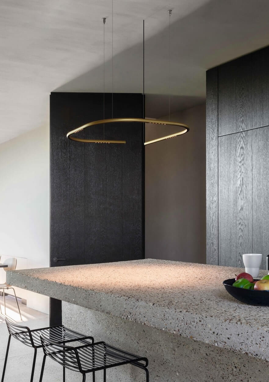 Si votre cuisine dispose d'un coin repas, tel qu'un bar ou une table à manger, envisagez d'adapter l'éclairage à la fonction de cette zone. Des suspensions au-dessus de la table peuvent contribuer à créer une atmosphère chaleureuse pendant les repas ou les conversations. Un éclairage dimmable est pratique dans ce cas, vous permettant d'ajuster l'ambiance en fonction des différentes occasions.