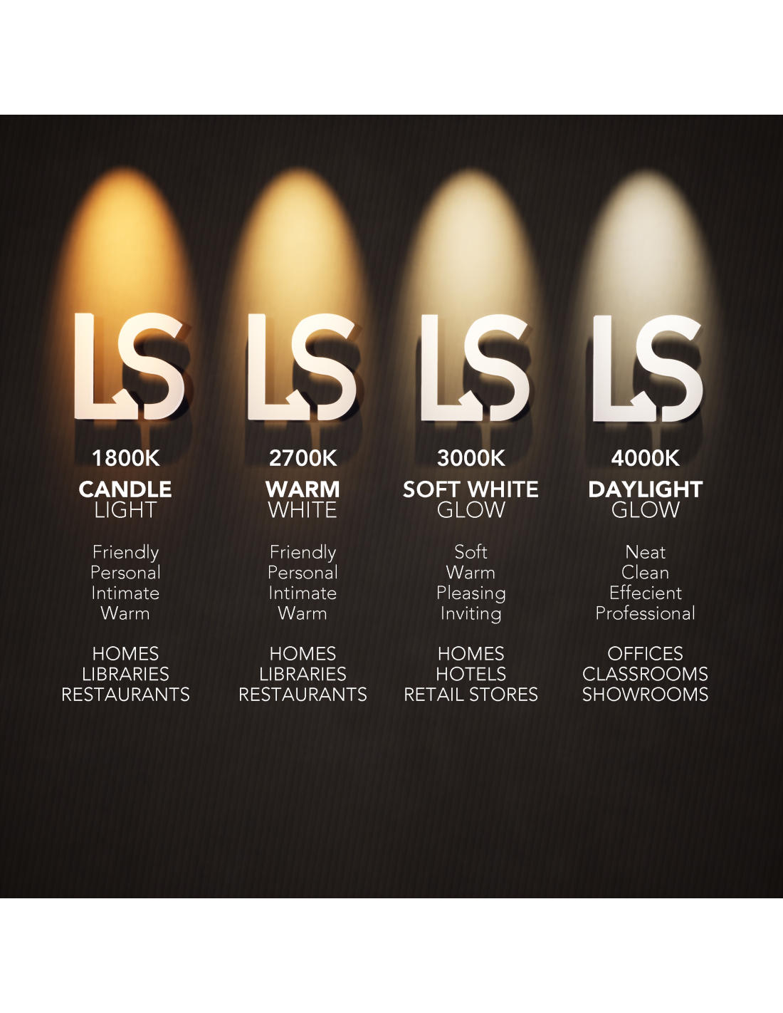 Lichtkleur wordt uitgedrukt in Kelvin (K). 2700–3000K is warm en sfeervol,